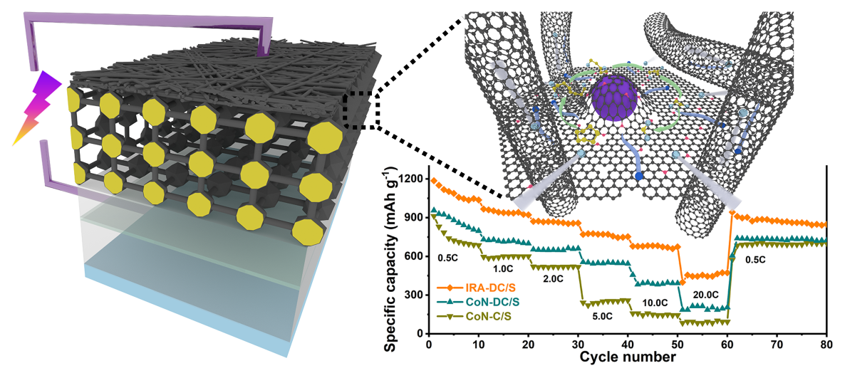 IRA-DC宿主材料微结构设计示意图及其锂硫电池倍率性能