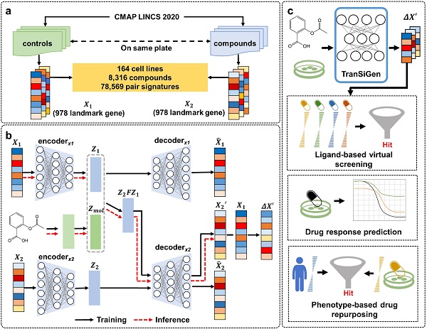 本研究引入深度生成模型TranSiGen,旨在通过自监督表征学习克服转录谱中固有噪声和混杂因素的局限,提供了一种标准化方法来表征与细胞环境和化合物效应相关的表型信息。TranSiGen表征在各种下游任务中证实了其有效性,并在基于表型的药物重定向及体外验证中展现了其在现实世界药物发现场景中的前景。