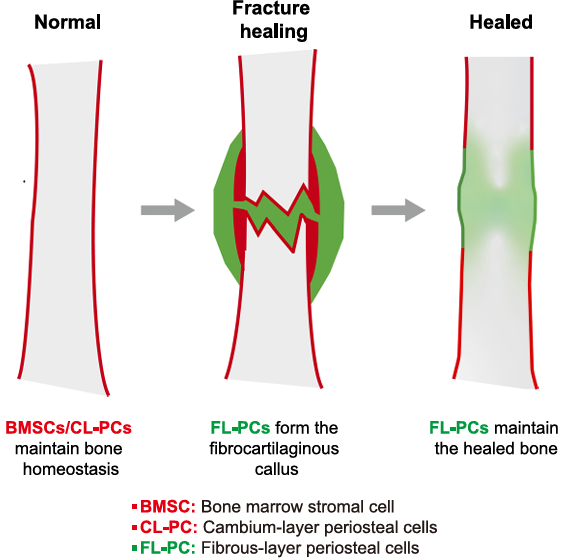 3月29日,国际学术期刊Developmental Cell在线发表了中国科学院分子细胞科学卓越创新中心(生物化学与细胞生物学研究所)周波研究组和邹卫国研究组的合作研究成果:“Fibrous periosteum repairs bone fracture and maintains the healed bone throughout mouse adulthood”。该项工作揭示了小鼠骨外膜中被认为不拥有成骨能力的骨外膜纤维层细胞虽然在稳态下不参与成骨,但在骨折后是损伤修复最主要的贡献者。研究同时发现骨折前后负责成骨的骨骼干细胞发生转变,也为提高愈合骨的骨质量指明了方向。
