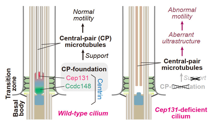 分子细胞科学卓越创新中心朱学良组合作发现支撑动纤毛中央微管的亚结构—中央微管基座