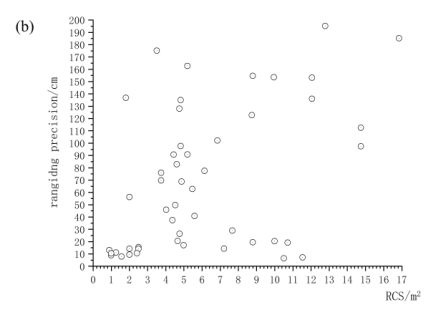 空间碎片测量结果统计:(a) 测量结果分布图;(b) 测距 精度分布图