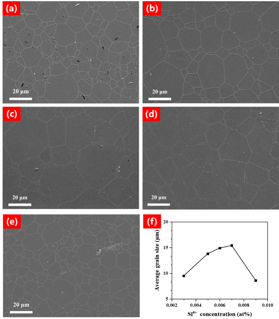 图3: Mg2+-Si4+共掺杂TAG透明陶瓷在1650℃烧结20小时后的扫描电镜图像以及陶瓷的平均晶粒尺寸
