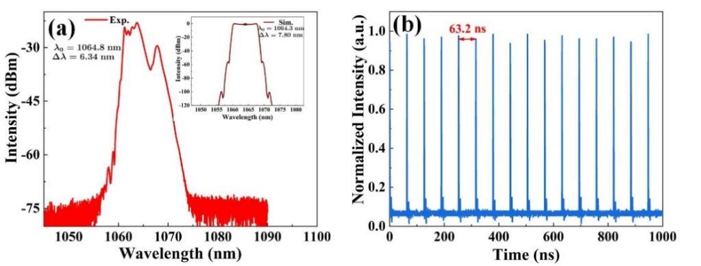 图1 1.06μm脉冲锁模激光器光谱与脉冲序列