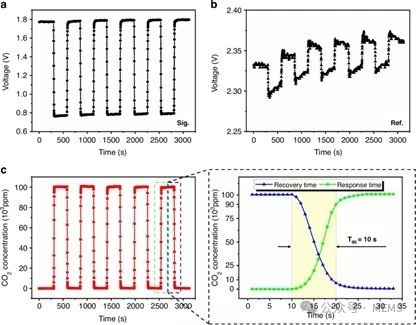 图6 超小型CO₂传感器的响应时间和恢复时间测试结果