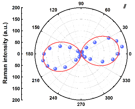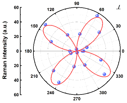 图1.在平行和交叉偏振拉曼配置下测量ReS2 Ag-like模式的峰值强度与偏振角度的关系。