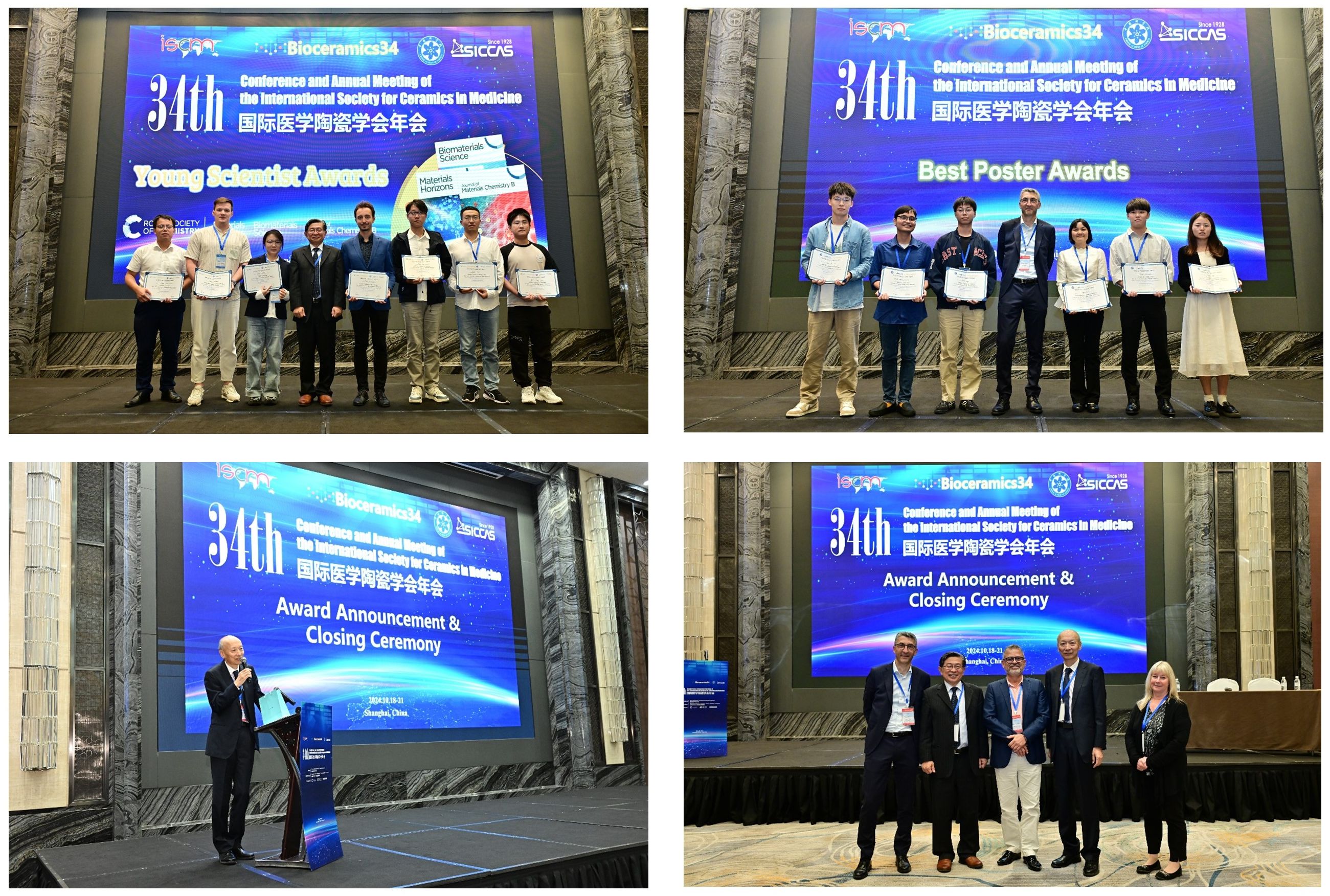 优秀青年科学家奖、最佳墙报奖获得者及国际医学陶瓷学会委员会部分专家合影。常江研究员宣布会议圆满结束