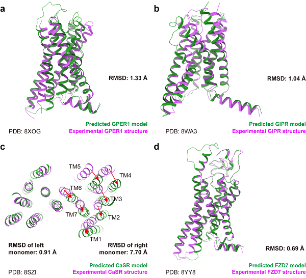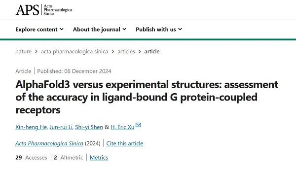 2024年12月6日,中国科学院上海药物研究所徐华强团队在Acta Pharmacologica Sinica发表文章“AlphaFold3 versus experimental structures: Assessment of the accuracy in ligand-bound G protein-coupled receptors”。该文章收集了AlphaFold3(AF3)发布后的GPCR-配体复合物实验结构,并从整体结构的准确性、口袋预测能力、复合物预测能力和可变区预测效果方面全面评估了AF3在GPCR-配体复合物方面的表现,并为进一步改进蛋白质结构预测工具提出了建议。