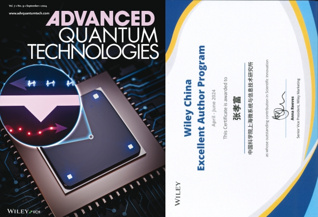 论文入选期刊当期的正文封面(Front Cover),近日还获得了2024年第二季度威立Wiley中国高贡献作者奖。论文第一作者为上海微系统所副研究员张孝富,研究生郇庆昌和马若岩。通讯作者为上海微系统所张孝富、尤立星。该研究得到了国家自然科学基金、国家重点研发计划等项目的支持。论文链接见https://doi.org/10.1002/qute.202300378。