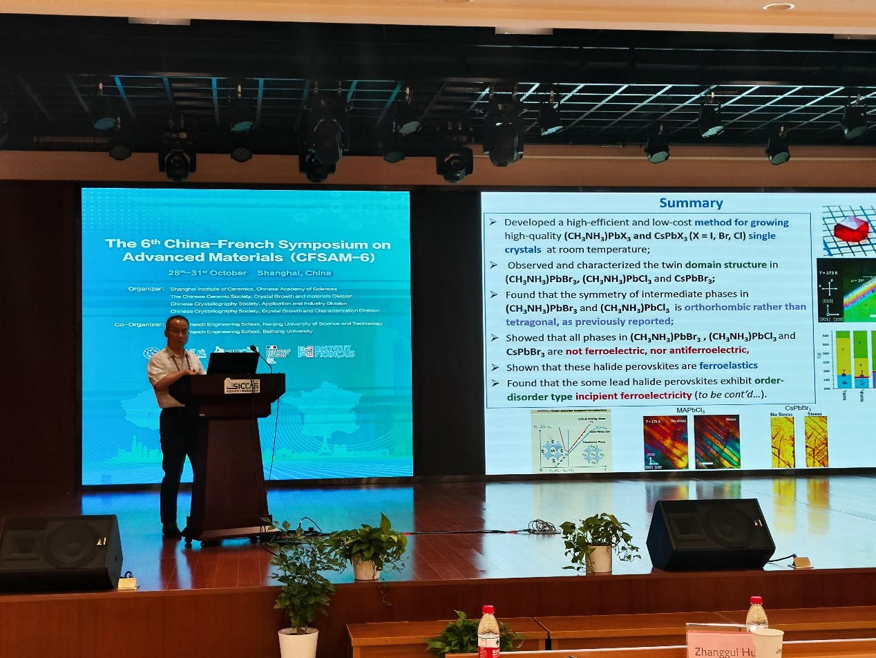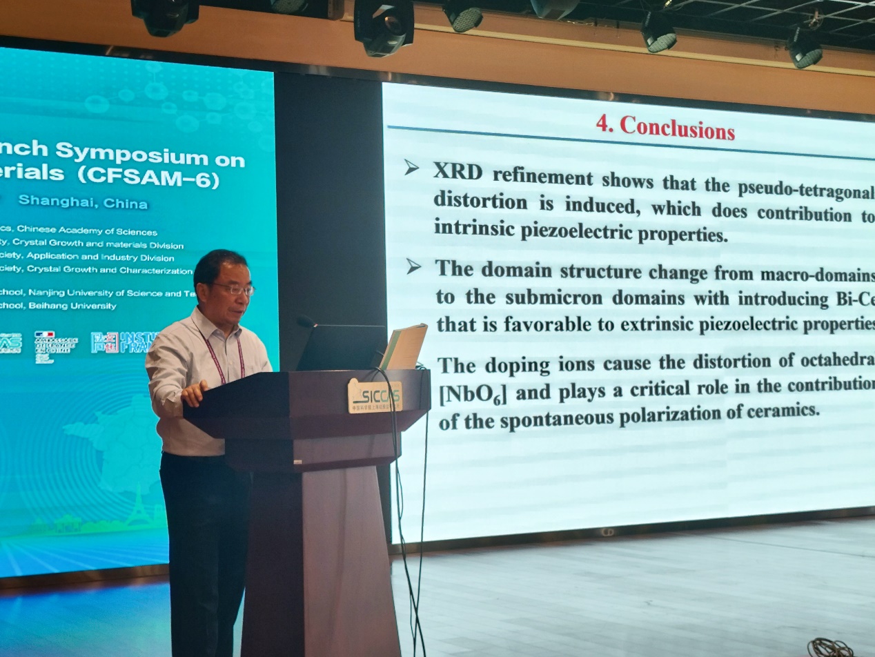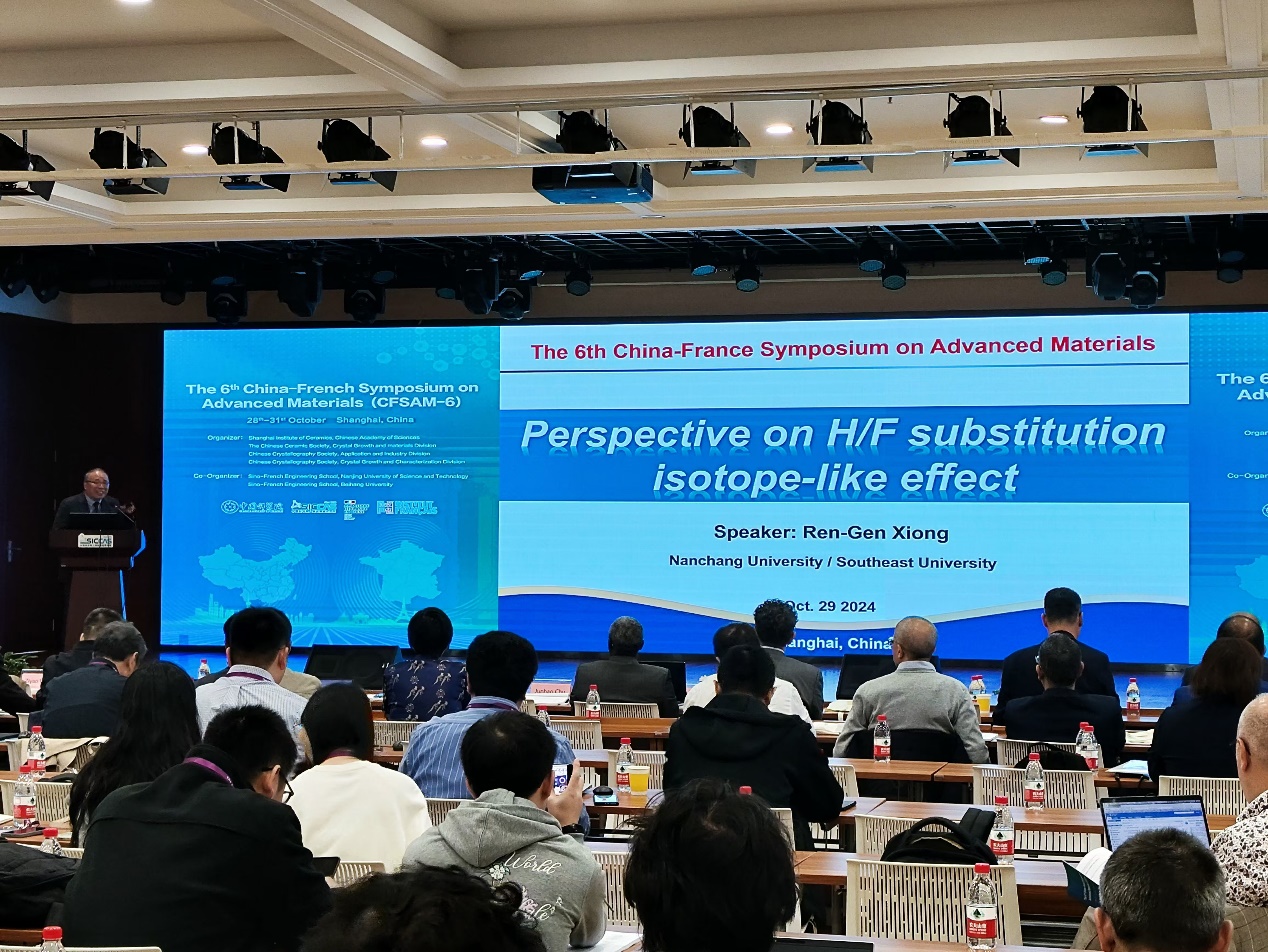 本届大会的主题包括:铁电压电材料、智能材料与器件、激光与非线性光学材料、能源材料、生物材料、材料结构表征及结构与性能关系、材料模拟等。与会代表就各自的研究领域和研究进展作了精彩的报告,与会人员进行了热烈的讨论。熊仁根院士、山东大学于浩海教授、Gérard Aka教授、法国国家科学研究中心(CNRS)Wilfrid Prellier博士分别作了题为“Perspective on H/F substitution isotope-like effect”、“Electron-phonon Coupling Laser Crystal”、“Nonlinear borate single crystals for the design of efficient frequency conversion of solid-state laser in the UV range”、Oxide films for Electronic, Optical and Health application的大会主题报告。多位国际知名学者包括加拿大西蒙菲莎大学院士Zuo-Guang Ye、浙江大学教授陈湘明、香港理工大学教授戴吉岩、四川大学教授朱建国、Brahim Elouadi教授等近百位专家分别作邀请报告和口头报告,7位青年学者和研究生参加墙报交流。会议还同期举办了小型展览会,4家相关领域的材料、表征设备、测试服务等企业参加了展览交流。部分与会人员一起参观上海同步辐射光源。中法先进材料大会(CFSAM)至今已经举办了六届 (分别是2010年-中国沈阳;2011年-中国上海;2013年-法国波尔多;2014年-中国北京;2017年-法国拉罗谢尔;2024年-中国上海),形成了系列中法先进材料会议,为中法两国学者在先进材料领域交流合作提供了平台。在本次会议上,来自中法两国的专家学者围绕先进材料领域的最新进展开展了广泛交流,进行了专题讨论和远景规划,进一步促进中国和法国在该领域的合作;同时,会议确认第七届中法先进材料大会(CFSAM-7)将于2025年在法国巴黎举行。