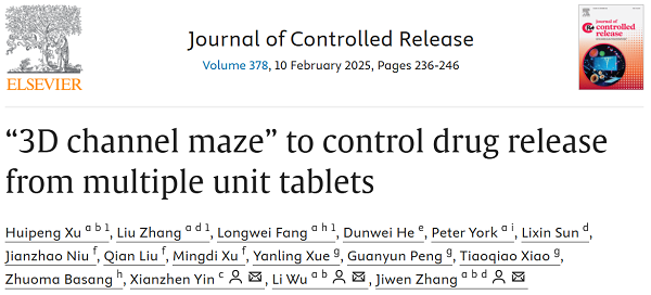 2024年12月8日,中国科学院上海药物研究所张继稳团队联合临港实验室、西藏大学、山东则正医药技术有限公司、英国布拉德福德大学、沈阳药科大学、中国食品药品检定研究院、中国科学院上海高等研究院等,在Journal of Controlled Release上发表了题为“3D channel maze” to control drug release from multiple unit tablets(控制多单元片药物释放的“3D通道迷宫”机制)的研究论文。