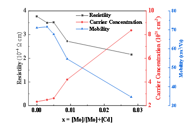 近期,中国科学院上海光学精密机械研究所高功率激光元件技术与工程部薄膜光学研发中心研究团队在过渡金属Mo掺杂CdO薄膜(MoxCd1-xO)调控ENZ非线性光学性能方面取得的新进展。相关研究成果以“Tailoring epsilon-near-zero wavelength and nonlinear absorption properties of CdO thin films by Mo doping”为题发表于Applied Physics Letters。