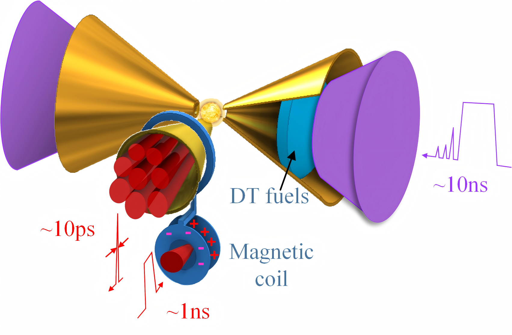 近期,中国科学院上海光学精密机械研究所高功率激光物理联合实验室范薇研究员团队联合上海交通大学吴福源副研究员和中国人民大学王伟民教授针对双锥对撞(DCI)点火方案的纳秒激光时空调控能力提升开展研究。相关成果以“Spatial-temporal modulation method of nanosecond laser for the double-cone ignition scheme”为题发表在Optics Express上。
