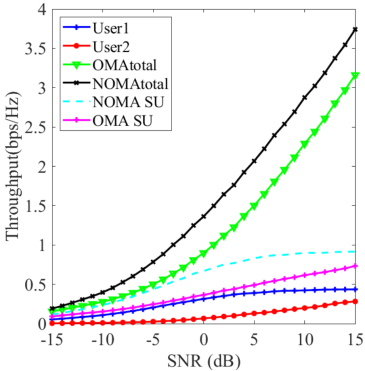 图2.所提技术在卫星覆盖独占区(左图)和卫星覆盖交叠区(右图)的吞吐量性能曲线