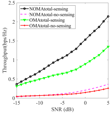 研究团队通过构建多卫星协同的NOMA上行链路架构,设计了基于循环延迟分集(CDD)的发射机结构与动态感知机制。针对多卫星覆盖区域中用户分布差异,推导了不同场景下的感知阈值,有效平衡了欠感知与过感知的矛盾。所提频谱感知技术利用特征检测方法,通过信号循环自相关运算精准识别主用户的传输状态,并结合阴影莱斯信道模型,优化感知用户的检测概率与虚警概率,显著提升了频谱空穴的利用率。实验表明,在5 dB信噪比条件下,该技术使星地非正交多址传输的吞吐量较传统正交多址传输提升61.5%,同时将虚警波动稳定在10%典型值以内,为高动态卫星通信环境提供了可靠保障,同时为未来弹性频谱感知与动态资源调度提供了新思路,对推动6G天地一体化网络的实际部署具有重要意义。
