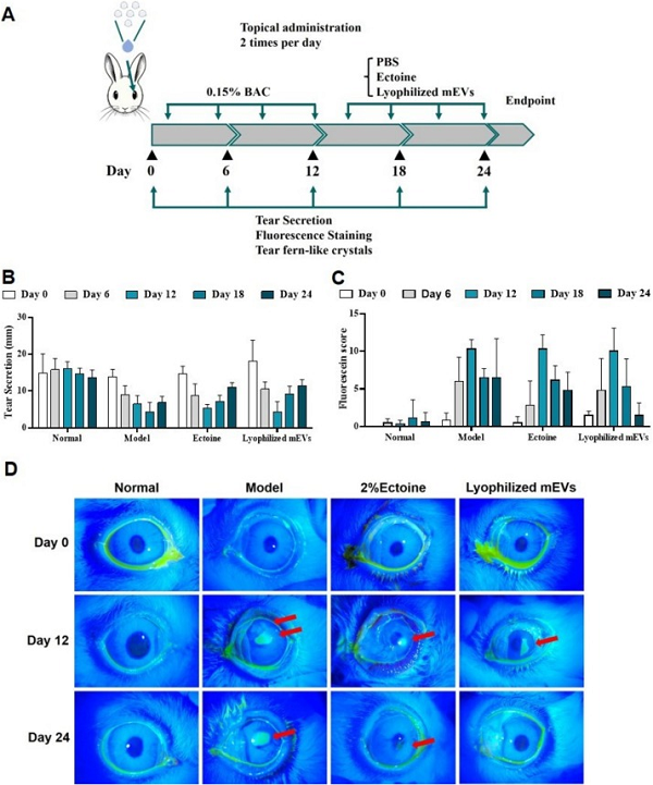 图2冻干mEVs对兔DED的治疗效果