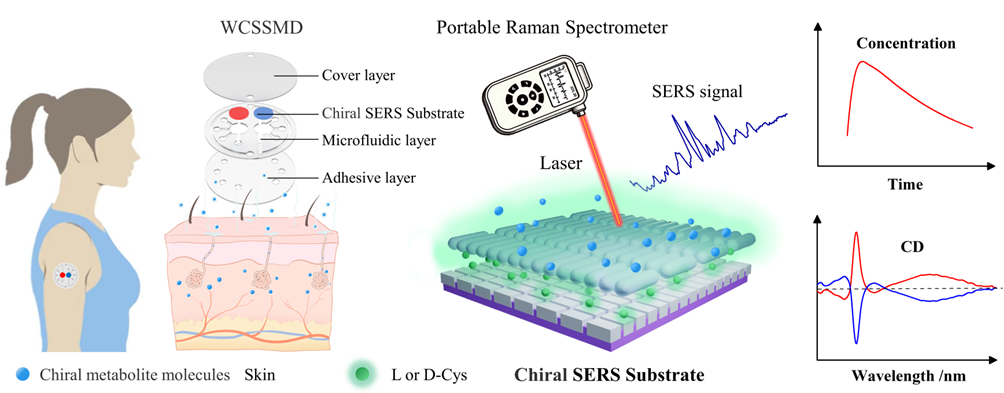 图1. 可穿戴手性SERS微流控传感技术实现人体汗液中手性代谢分子的实时监测
