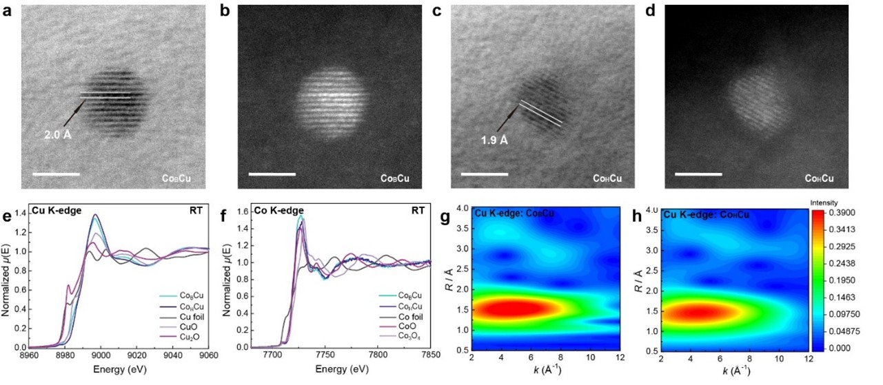 研究通过使用不同的还原剂(NaBH4和H2)制备了两种具有相同化学组成但电子结构迥异的双金属催化剂(CoBCu/Al2O3和CoHCu/Al2O3)。综合运用HERFD-XANES、VtC-XES、operando XAFS、in-situ NAP-NEXAFS等多种先进的X射线光谱技术,并结合其他表征手段,详细研究了它们的电子结构及其在氨选择性催化氧化(NH3-SCO)反应中的性能。本研究清晰地揭示了从原子级结构(Cu-O键长)到电子结构(键强/跃迁能),再到材料性质(氧化还原能力),最终影响催化性能(反应活性与选择性)的完整构效关系链。这项工作不仅开发了一种高效的非贵金属催化剂,更重要的是为理性设计高性能催化剂提供了坚实的科学基础:通过精准调控局部配位环境来优化电子结构,从而定向增强所需性能。