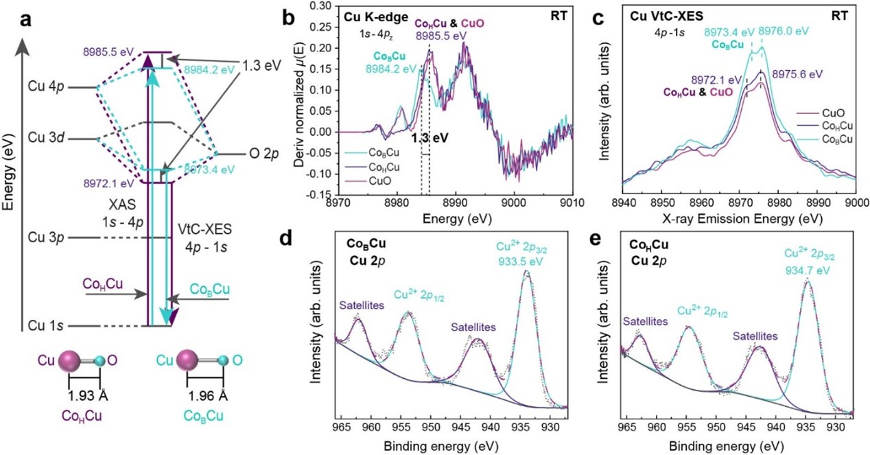 图2 HERFD-XANES和VtC-XES揭示Cu-O键成键和反键轨道差异