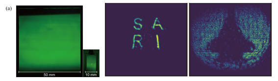 研究团队进一步针对成像面积受限问题,提出了基于大尺寸原子气室和均匀激光整形的优化策略,实现了50mm×50mm的大视场太赫兹原子成像。该系统有效扩展了探测视场,提高了原子荧光分布的空间均匀性,使太赫兹量子成像从以往的毫米尺度验证,迈向更接近实际应用需求的系统尺度。目前,该系统已成功应用于液体混合过程的可视化监测,并在化学检测与生物扩散过程分析中展现出应用潜力。