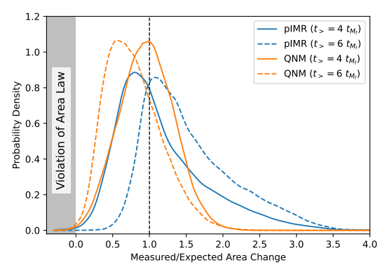 并合前后黑洞事件视界面积变化的测量值与预期值之比的概率密度分布