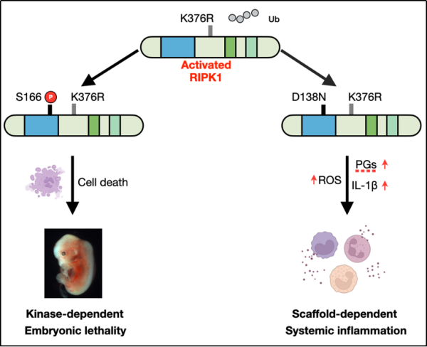 近日,中国科学院上海营养与健康研究所团队,聚焦RIPK1关键泛素化位点K376,通过构建多种遗传小鼠模型,解析了RIPK1通过泛素化修饰在个体发育和炎症调控中的双重作用,为RIPK1相关炎症性疾病的发病机制研究和干预策略提供了理论框架。