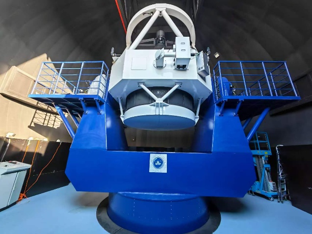 该望远镜采用R-C光学系统,通光口径2.5米,焦比f/10,设置有两个视场15′×15′的耐焦和两个视场3.5′×3.5′折转卡焦,采用直接驱动的地平式跟踪机架,验收交付后将成为我国口径最大的单镜面光学精测天文望远镜。