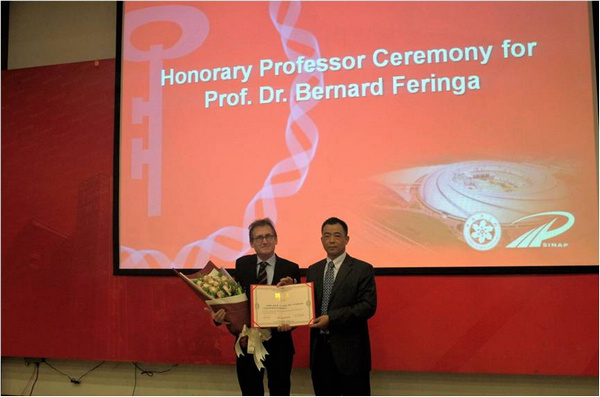 11月2日,伯纳德·L·费林加(Bernard L. Feringa)教授应邀访问中国科学院上海应用物理研究所并被聘为名誉研究员。费林加教授是荷兰格罗宁根大学教授,荷兰皇家科学院副院长,并被荷兰女王授予骑士头衔。上月,他因在分子机器设计与合成领域的杰出贡献而与法国的Jean-Pierre Sauvage教授和美国的J.Fraser Stoddart教授获得了2016年诺贝尔化学奖。
