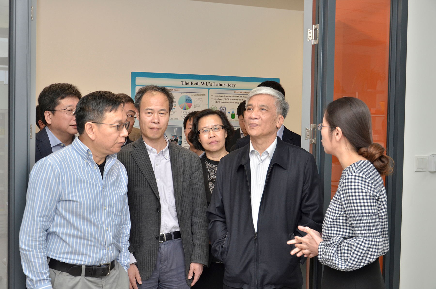 2018年4月9日下午,全国人大常委会副委员长、民盟中央主席丁仲礼在全国政协常委、民盟中央副主席、上海市副市长陈群等的陪同下考察调研中科院上海药物所。