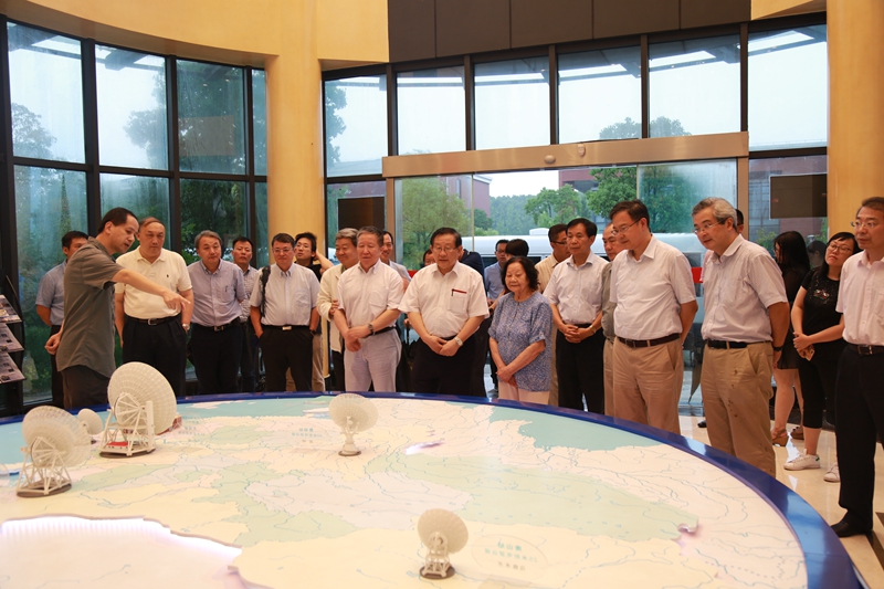 在上海天文台佘山园区,万钢一行实地考察了天马望远镜与VLBI深空探测指挥控制中心,听取了天马望远镜与VLBI测轨分系统执行探月任务的专题汇报。