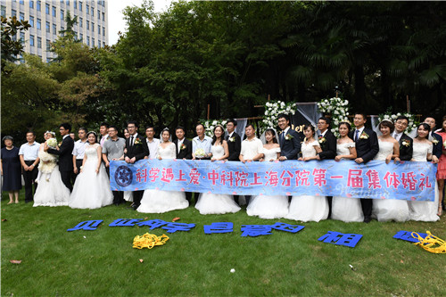9月16日下午,由中科院沪区党委、上海分院工会、上海分院妇委会主办的中科院上海分院第一届集体婚礼在岳阳路320号大草坪隆重举行。来自上海分院系统8家研究院所的12对新人参加本次集体婚礼,沪区各研究院所分管领导、观礼嘉宾及新人导师、亲朋好友等近200人一起见证了这场爱与科学相遇的浪漫婚礼。