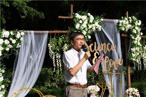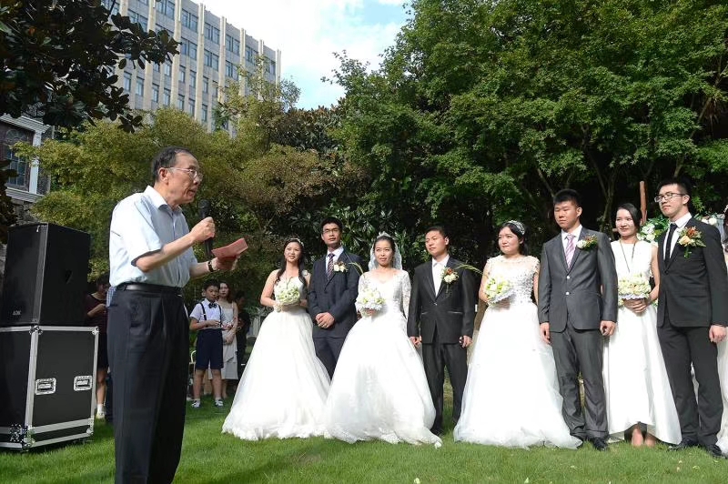 中科院院士沈文庆作为证婚人见证了此次婚礼。他认为首届集体婚礼虽简朴但又隆重,他祝福新人在以后的日子里前程似锦、花中有梦、携手创新、梦想成真。