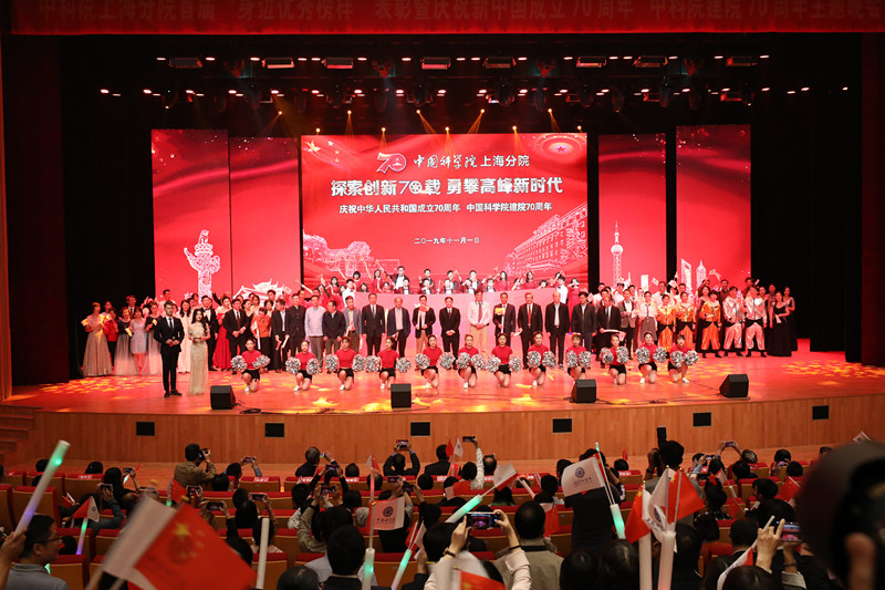 为庆祝中华人民共和国成立70周年和中国科学院建院70周年,推进“不忘初心、牢记使命”主题教育,11月1日晚上,中科院上海分院举行“探索创新70载,勇攀高峰新时代”庆祝新中国成立70周年中国科学院建院70周年主题晚会。中国科学院原副院长、上海分院原院长、上海科技大学校长江绵恒,中国科学院原副院长、上海张江综合性国家科学中心常务副主任施尔畏,中科院院士、上海交通大学常务副校长丁奎岭,中科院院士、上海科技大学党委书记、中科院上海高研院院长李儒新,上海市科技党委副书记侯继军以及中科院直属机关党委、上海市总工会、上海市科技党委有关负责同志,上海分院领导班子成员、各单位领导班子成员、广大科技工作者和研究生等共1000余人参加主题晚会。