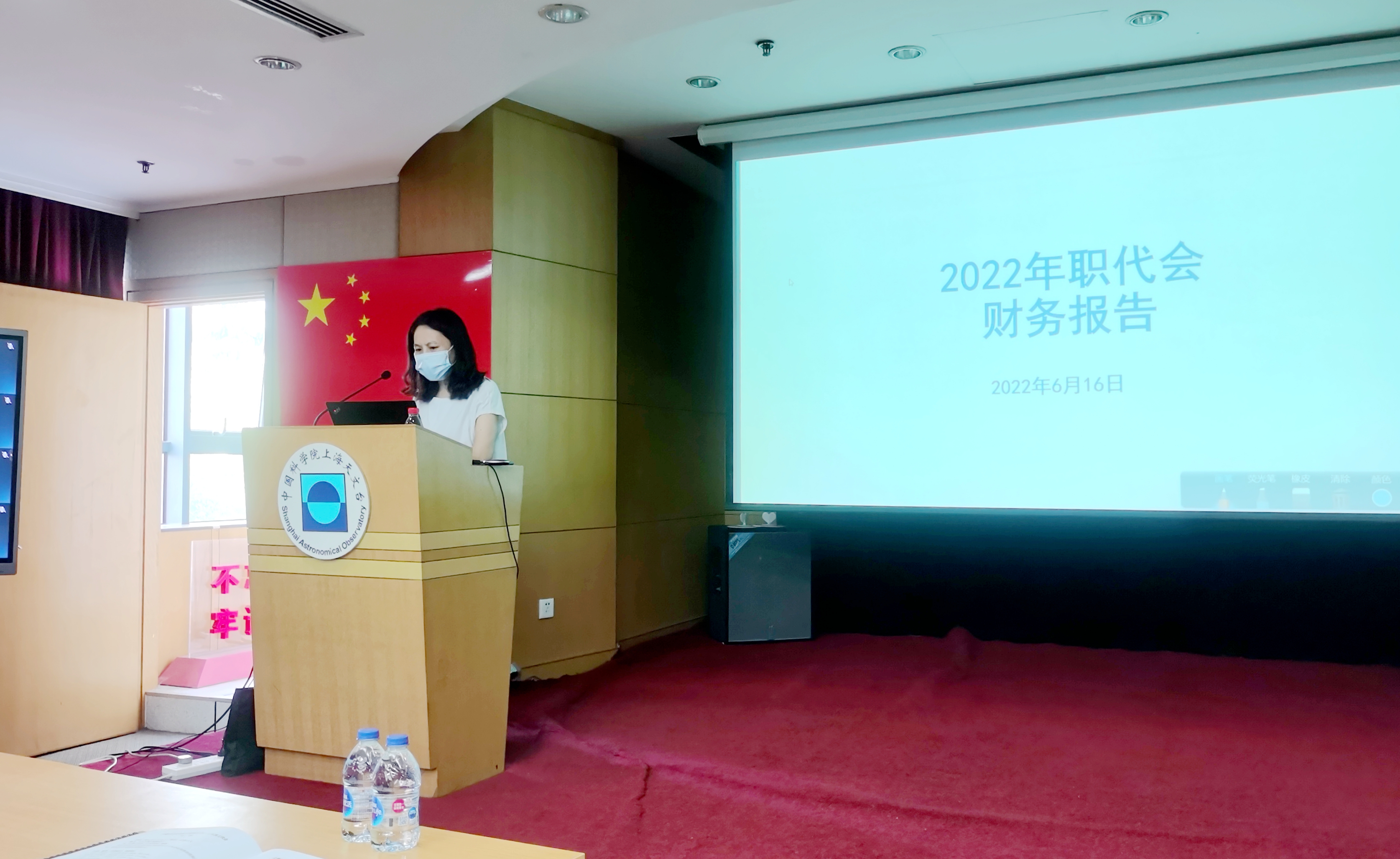 会议还审议了《上海天文台工会2021年经费审查报告》、《六届四次职代会代表提案处理情况报告》两个书面报告,对2021年职工工资奖金及绩效发放情况、职工教育培训经费使用情况、职工“五险二金”缴纳情况、行政部门预决算情况、我台空置房屋租赁情况等公开报告进行了墙报张贴。