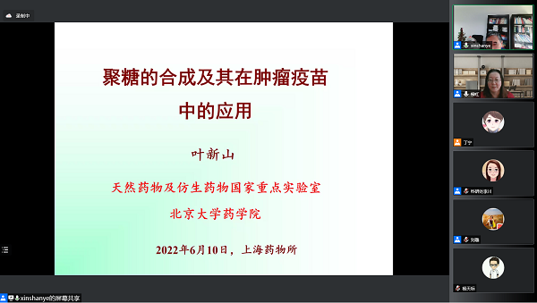 2022年6月10日,上海药物所“药学前沿承嘏讲坛”第四十六讲在线举行。北京大学叶新山教授应邀作了题为“聚糖的合成及其在肿瘤疫苗中的应用”的专题报告。报告由新药研究国家重点实验室副主任柳红研究员主持,药物所200余名研究生和科研人员参会。