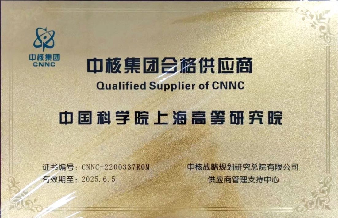 这标志着上海高研院具有了向中核集团总部及下属单位提供相关产品和服务的资格,为上海高研院与中核集团开展联合攻关打下了基础。