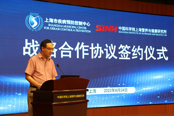 上海营养与健康研究所副所长(主持工作)胡国宏和上海市疾病预防控制中心主任付晨代表双方签署了合作协议。