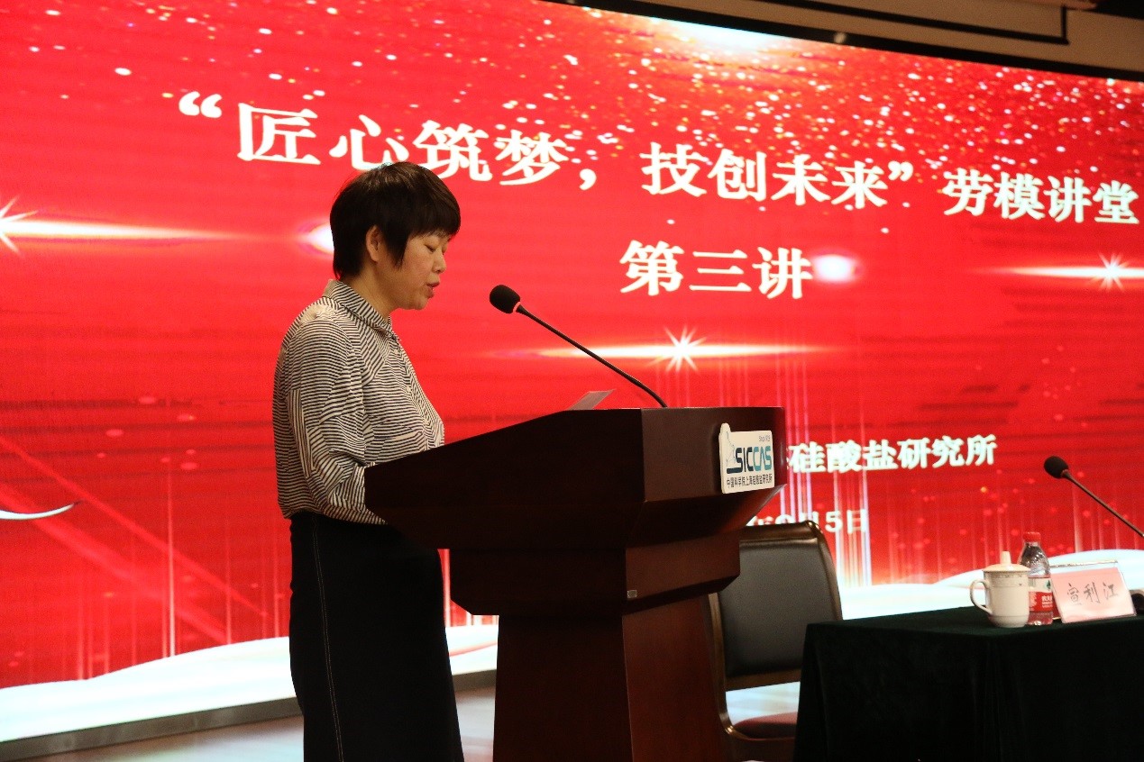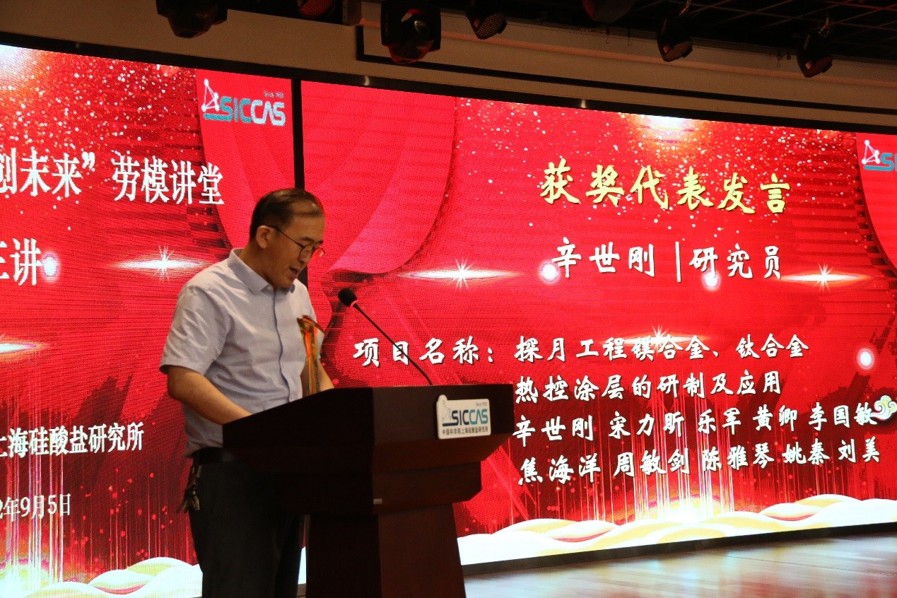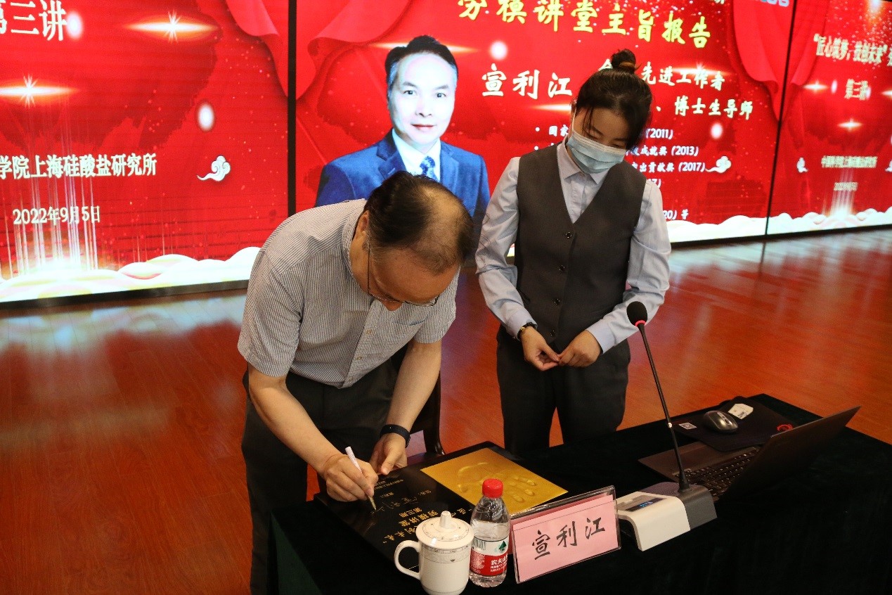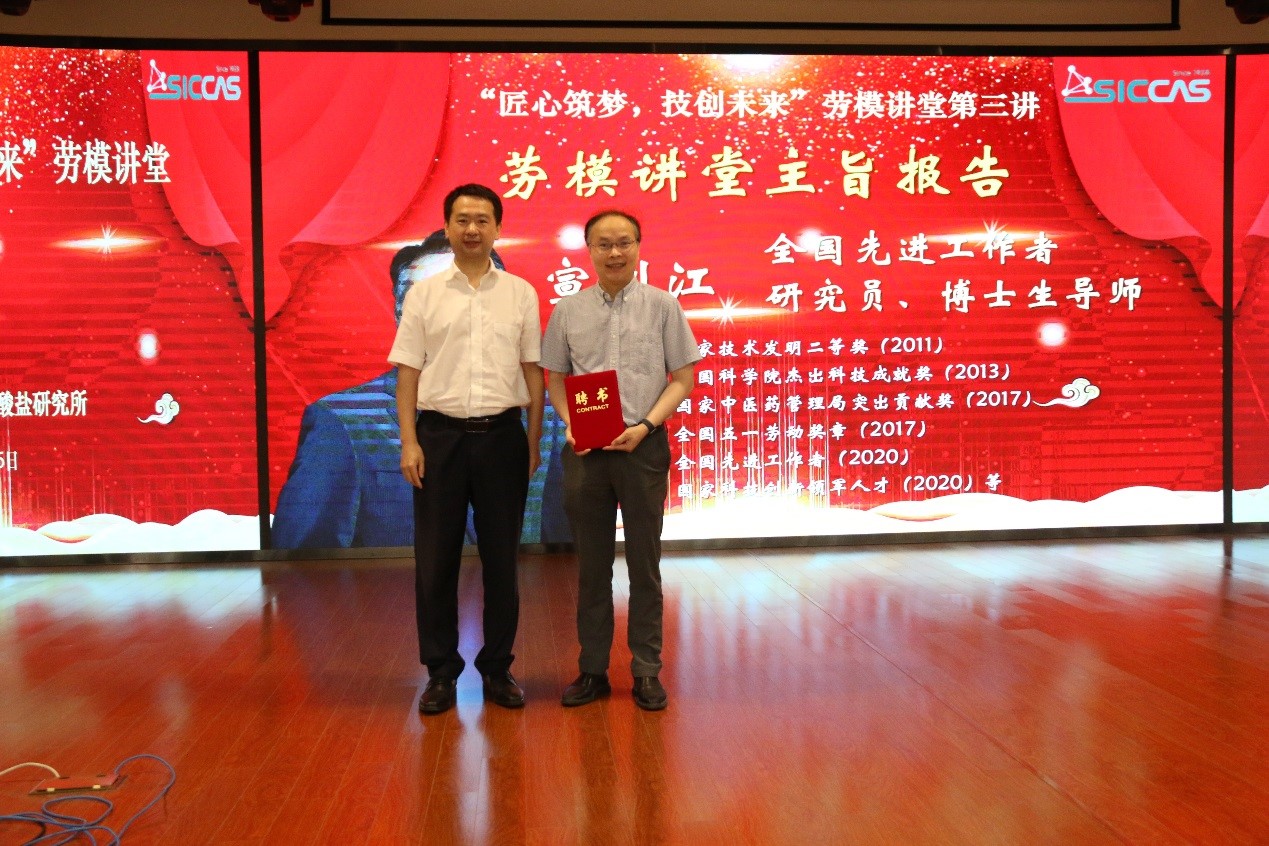 上海硅酸盐所党委书记王东为宣利江研究员颁发劳模讲堂证书