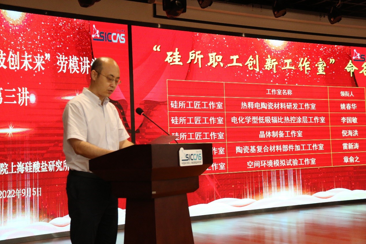 工会委员、人力资源处处长贺天厚宣读“硅所职工创新工作室”命名决定