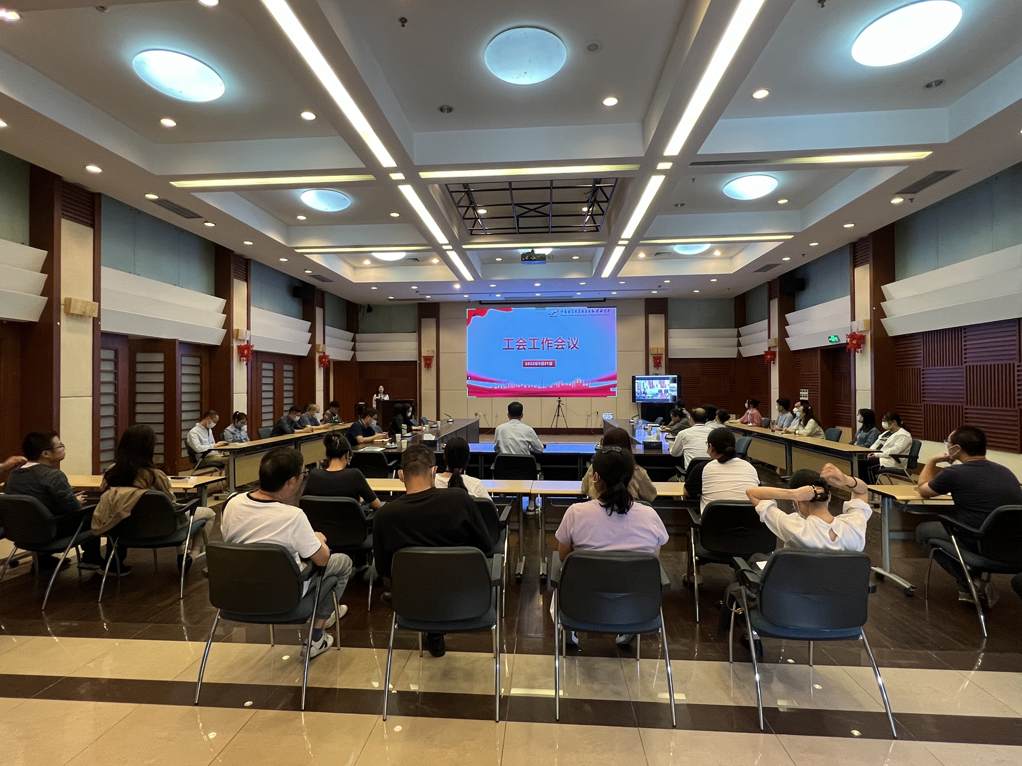 2022年9月21日下午,上海应物所召开工会工作会议,所工会委员和经审委员、各分工会主席和委员共计50余人参加会议。