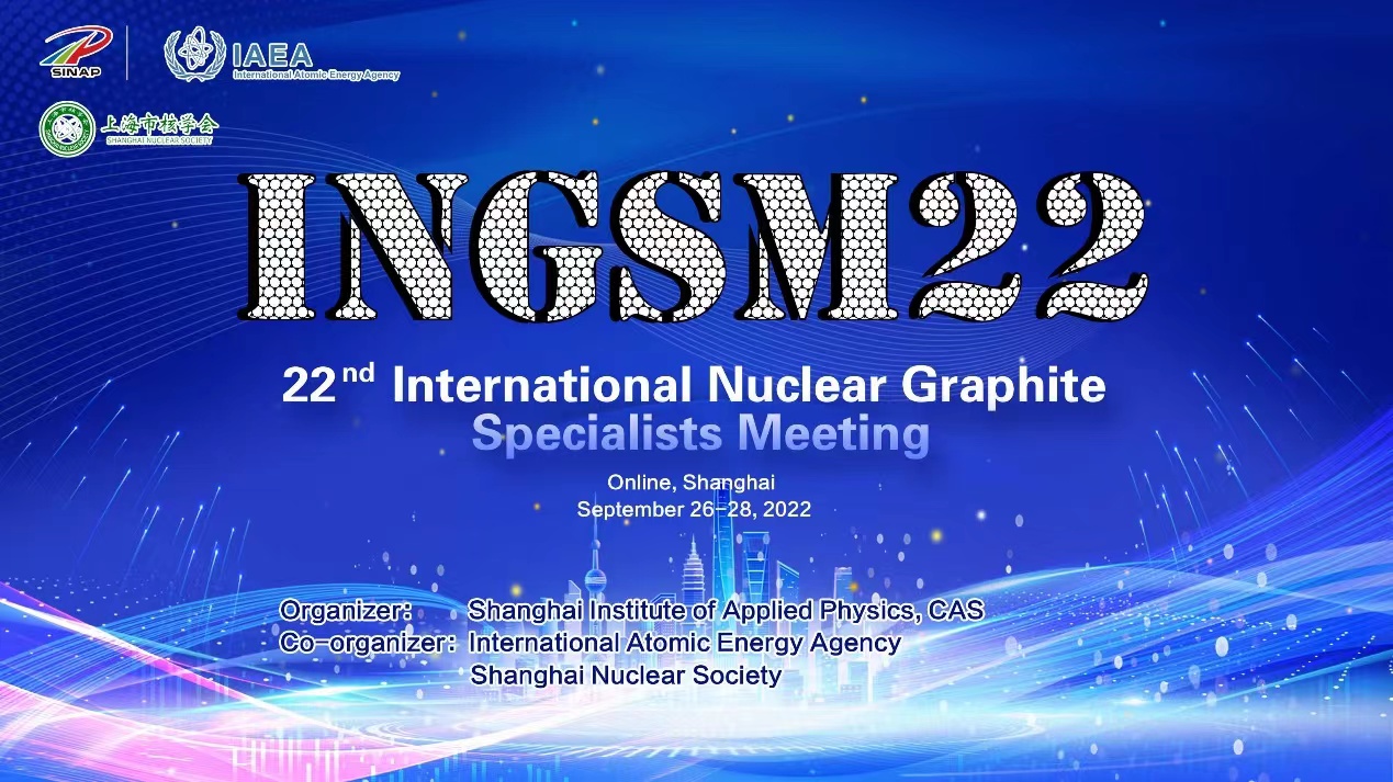 2022年9月26日至9月28日,第22届国际核石墨专家会议(22nd International Nuclear Graphite Specialists Meeting,INGSM22)顺利召开。此次会议由中国科学院上海应用物理研究所主办,国际原子能机构和上海市核学会协办。会议名誉主席为上海应物所所长戴志敏研究员,执行主席为上海应物所曾广礼研究员,来自中国、英国、美国、荷兰、比利时、韩国等国家的四十余位专家,一百二十余人次参加了此次会议。受新冠肺炎疫情影响,本次会议采用线上形式举办。