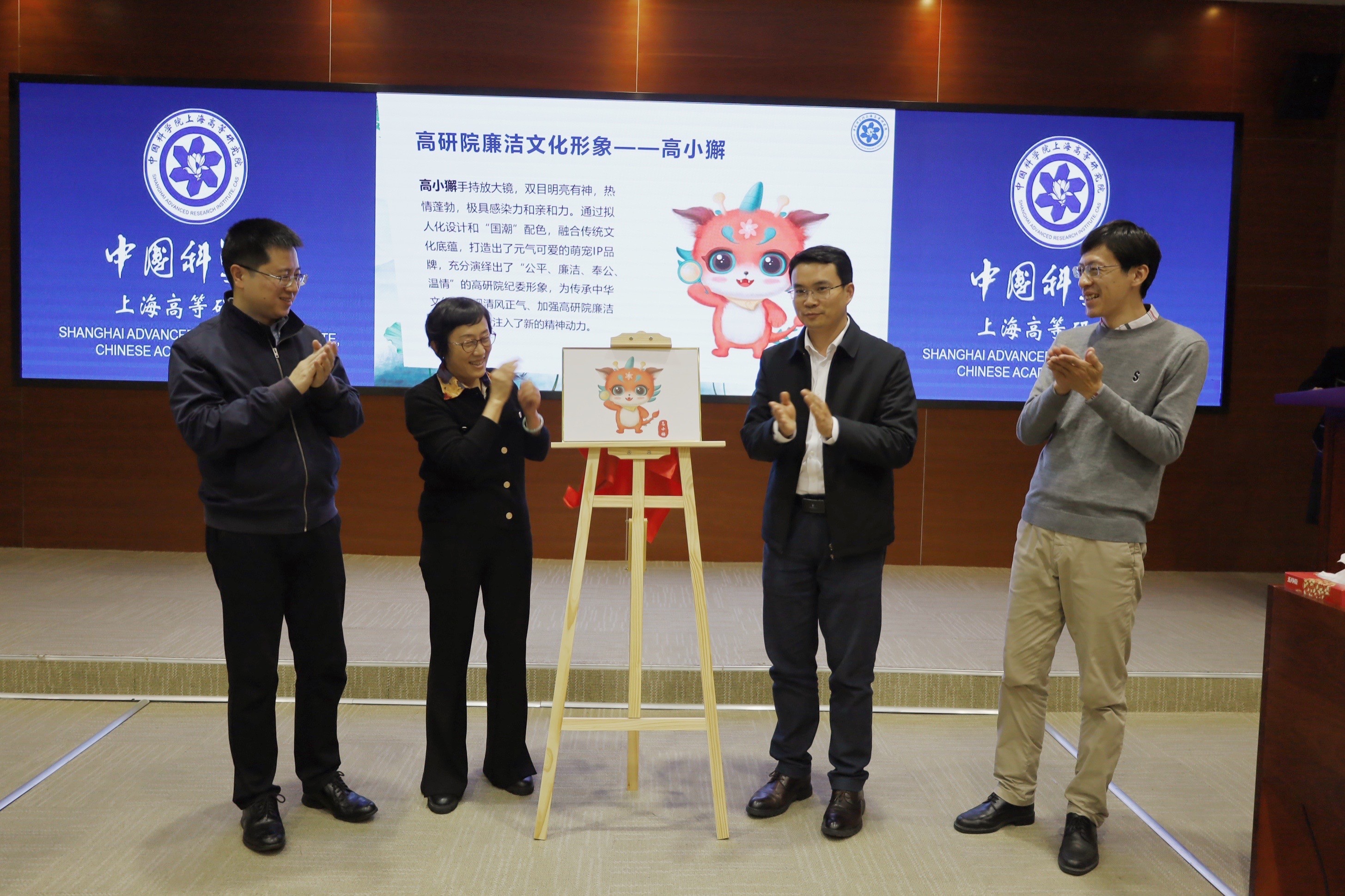 本次会议首次发布了高研院廉洁文化形象。朱熊、周国丞、唐铮、屈炜共同为廉洁文化形象“高小獬”揭幕。“高小獬”创作原型取自上古神话中代表“公平正义 明辨是非”的独角神兽——獬豸。通过拟人化设计、《山海经》配色和创新萌宠造型,高研院纪委深刻领会“增强中华文明传播力影响力。坚守中华文化立场,提炼展示中华文明的精神标识和文化精髓”的精神,把廉洁文化建设与弘扬优秀传统文化有机结合,充分展现 “公平、廉洁、奉公、温情”的工作形象,为加强廉洁文化体系建设提升传播力、注入新活力。