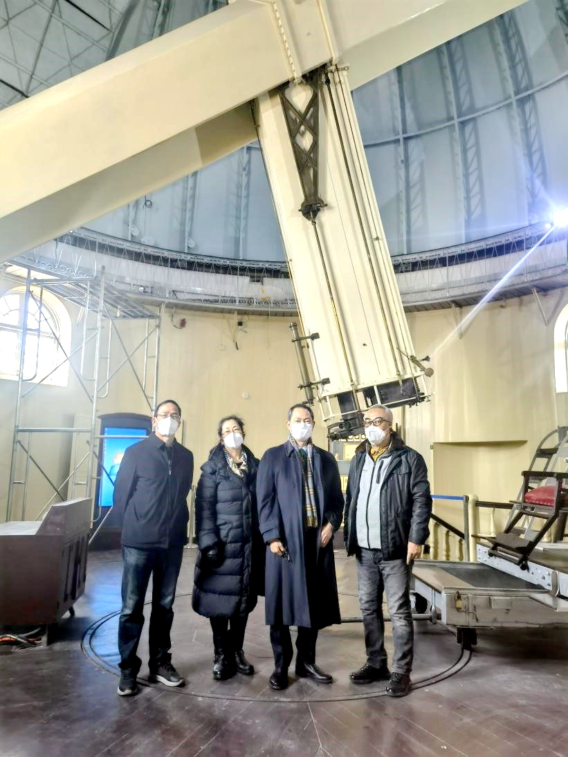 2022年12月22日,日本国驻上海总领事馆总领事赤松秀一(大使衔)一行应邀访问了上海天文台博物馆与天文底片数字化实验室。上海天文台党委书记、副台长侯金良,赵建海特聘研究员及于涌正高级工程师等人陪同访问。