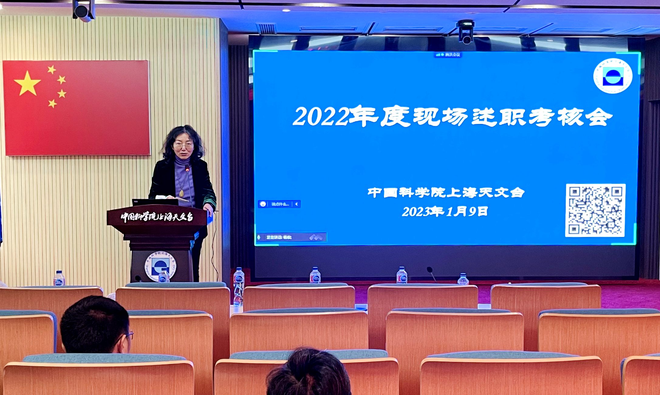为全面总结2022年各项工作成效,对标党的二十大对强化国家战略科技力量的新要求,深入查摆工作中存在的不足,积极谋划2023年重点工作思路,2023年1月9日,上海天文台召开2022年度现场述职考核会。台领导、台务委员、研究室负责人、管理支撑部门负责人以及各部门工作人员代表等55人参加了会议。会议由纪委书记姚娅平主持。