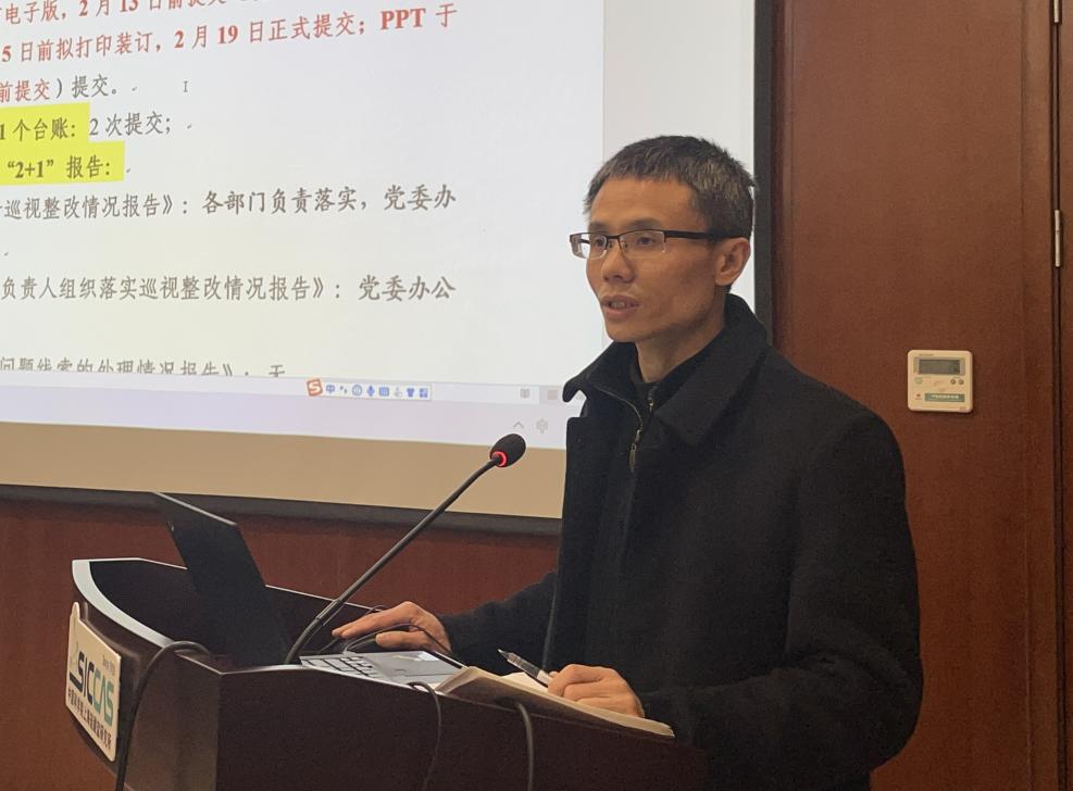 党委办公室(所办公室)主任毛朝梁介绍了巡视整改各类材料的提交要求,并明确了有关时间节点。