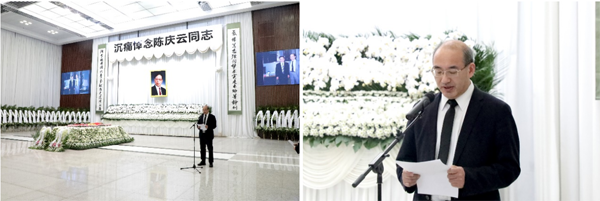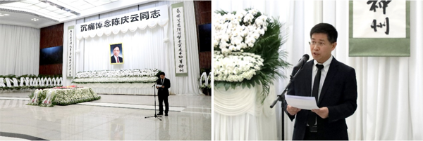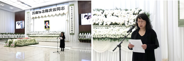 告别仪式由上海有机所党委副书记(主持工作)、副所长游书力主持。有机所所长唐勇院士介绍陈庆云院士生平,陈庆云院士女儿代表家属致答谢词。哀乐声中,大家来到陈庆云院士遗体前肃立默哀鞠躬献花,作最后的告别。