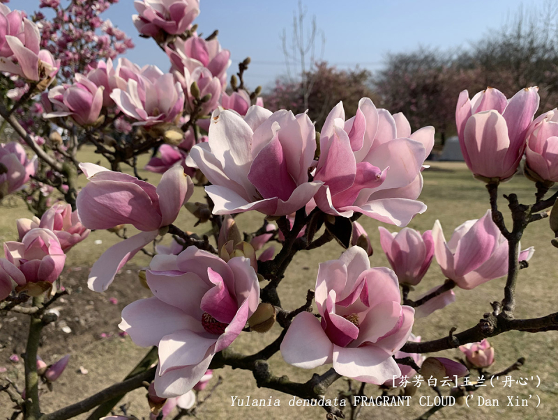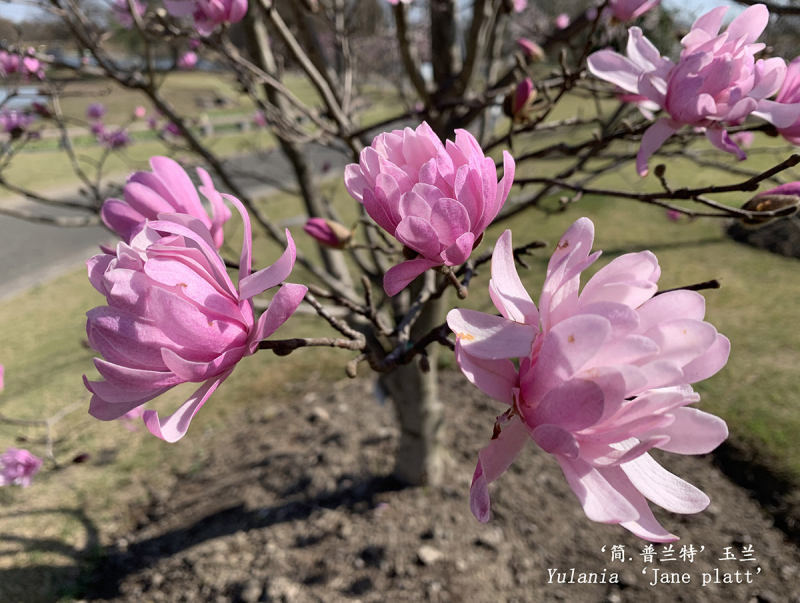 在木兰园中展示比较集中的有星花玉兰品种系列,包括星花玉兰实生选育品种‘玫红’星花玉兰(Y. stellata ‘Rosea’)、‘皇家之星’星花玉兰(Y. stellata‘Royal Star’)、‘睡莲’星花玉兰(Y. stellata ‘Waterlily ’)、‘粉菊’星花玉兰(Y. stellata‘Chrysanthemumi Flora’)、‘红梅西’星花玉兰(Y. stellata ‘Rosea Massey’)等,以及由星花玉兰和紫玉兰等其它玉兰杂交培育出的‘苏珊’玉兰(Yulania‘Susan’)、‘贝蒂’玉兰(Y. ‘Betty’)、‘简’玉兰(Y. ‘Jane’),‘朱迪’玉兰(Y. ‘Judy’)‘简·普兰特’玉兰(Y. stellata ‘Jane Platt’);法国二乔玉兰Y.×soulangeana品种系列,如‘壮丽’二乔玉兰(Y.×soulangeana ‘Speciosa’)、‘兰尼’二乔玉兰(Y.×soulangeana ‘Lennei’) 、‘优白’二乔玉兰( Y.×soulangeana ‘Alba Superba’);洛伯纳玉兰栽培变种品种群,如‘伦纳德·麦瑟尔’洛伯纳玉兰(Y.×loebneri ‘Leonard Messel’)、‘麦利尔’洛伯纳玉兰(Y.×loebneri ‘Merill’);国内新优品种,如‘重瓣白’玉兰(Y. denudata 'Chong Ban Bai')、花开绿色的‘绿星’玉兰(Y. cylindrica‘Greenstar’)、玉兰属和含笑属远缘杂交的三倍体新品种系列红寿星(Y.×Michelia ‘Fairylake’) 、红笑星(Y.×Michelia ‘Star’)等。