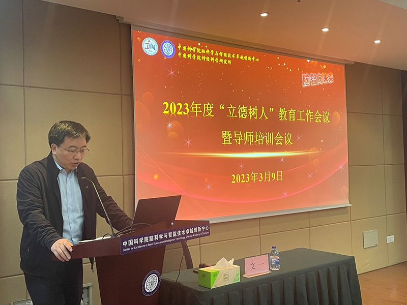为全面贯彻学习党的二十大精神,落实习近平总书记在全国教育大会上的重要讲话精神,进一步增强研究生指导教师的国家使命感和队伍建设,提升研究生指导教师的理论水平和指导学生能力,促进研究生教育事业的可持续发展,3月9日下午,中国科学院脑科学与智能技术卓越创新中心在新生命科学大楼A405报告厅举办了2023年度“立德树人”教育工作会议暨导师培训会议。参加此次会议的是全体研究生导师。会议由党委副书记、纪委书记王茂华主持。