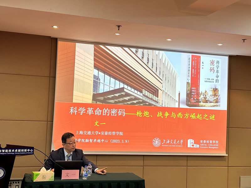 会议特邀上海交通大学安泰经管学院特聘教授文一老师作题为“科学革命的密码——枪炮、战争与西方崛起之谜”的报告。文一教授以科学史研究中的一个经典问题——科学革命为什么发生在西方而非东方为切入点,通过丰富的史料,递进的逻辑,展现出以17世纪牛顿力学体系和18世纪拉瓦锡的化学理论为标志的近代科学的兴起,与那个时代热兵器战争下欧洲国家竞争密不可分,正如恩格斯所说,“社会一旦有技术上的需要,这种需要就会比十所大学更能把科学推向前进”。近代以来中国在经过鸦片战争等西方列强侵略的屈辱,才深刻的认识到落后就要挨打,激发出了参与国家竞争、大力发展科学技术的意识和需求,科技才取得重大的进步。文一教授的报告用宏大的视角,跨学科交叉的知识,表明中国只有勇敢地投身于大国竞争和对星辰大海的追求,才能为中国的科技发展、产业升级、文明复兴带来巨大的社会推动力量。