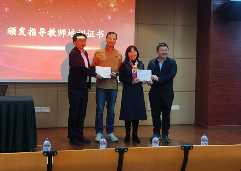 优秀导师分享过后,是颁发指导教师培训证书的环节,王凯研究员与黄薇研究员作为代表上台领取证书。