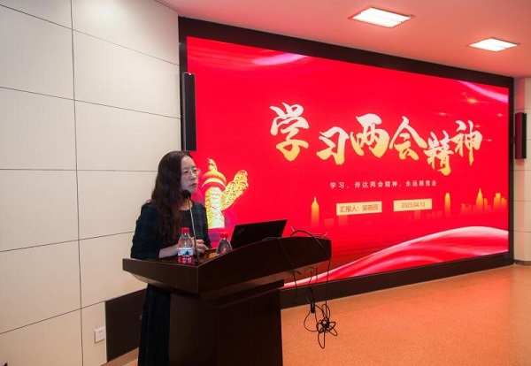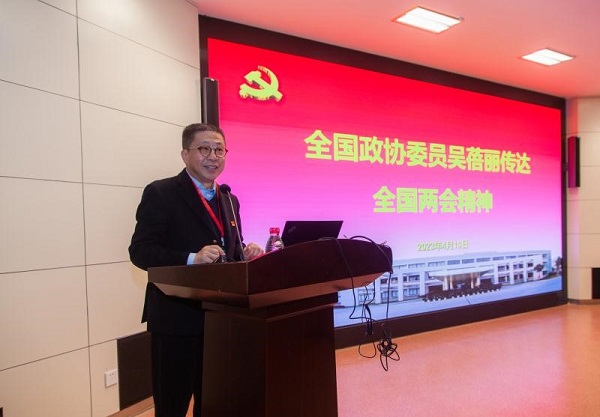 会上,吴蓓丽作《学习、传达两会精神,永远跟党走》专题报告,围绕全国政协十四届一次会议总体情况、大会重要报告及会议精神、个人履职及提交提案等三个方面作了传达学习。吴蓓丽指出,这次全国两会是全面贯彻落实党的二十大精神开局之年、踏上实现第二个百年奋斗目标新征程重要时刻召开的重要盛会,传达好、学习好、贯彻好全国两会精神是当前一项重要的政治任务,希望广大科技工作者要进一步深入学习贯彻好全国两会精神,为加快实现高水平科技自立自强矢志奋斗!